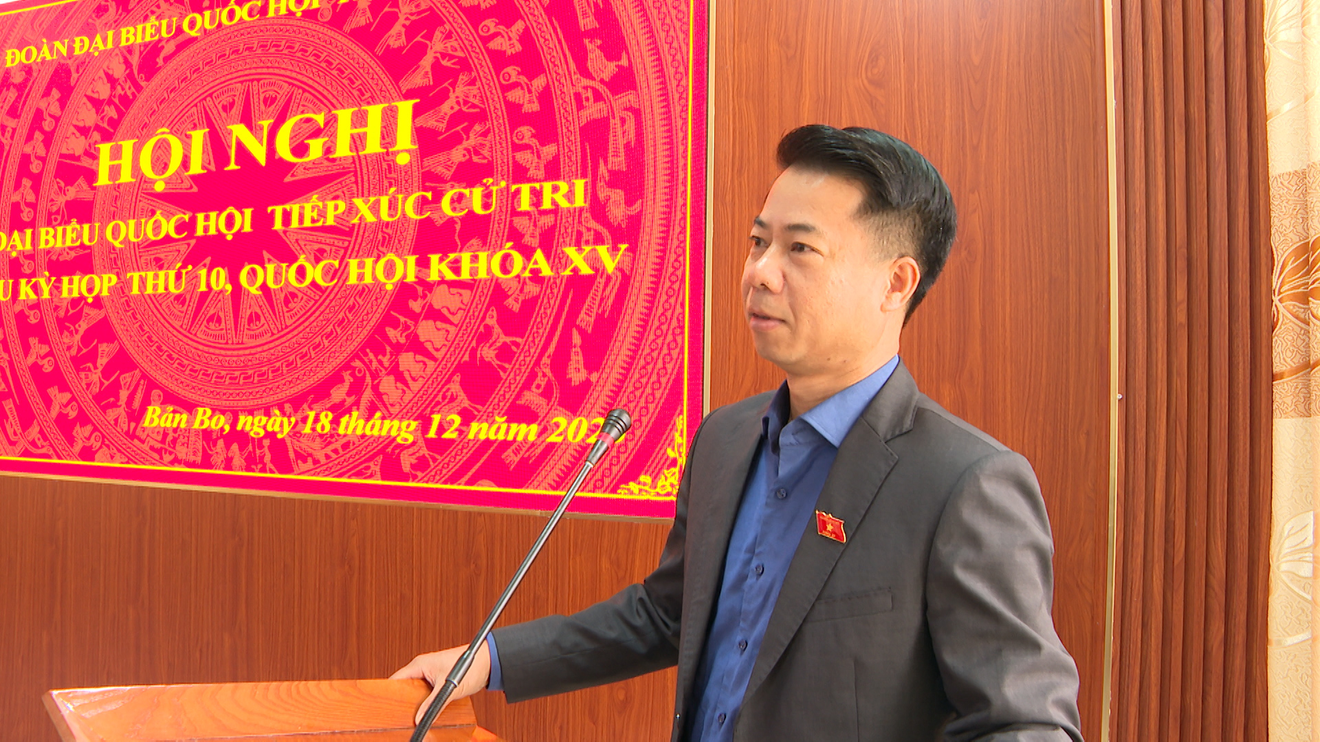 Thực hiện chương trình tiếp xúc cử tri sau Kỳ họp thứ 10, Quốc hội khóa XV, ngày 18/12, Đoàn Đại biểu Quốc hội tỉnh do đồng chí Hoàng Quốc Khánh - Phó trưởng đoàn chuyên trách Đoàn Đại biểu Quốc hội tỉnh làm trưởng đoàn đã có buổi tiếp xúc cử tri tại xã Bản Bo.