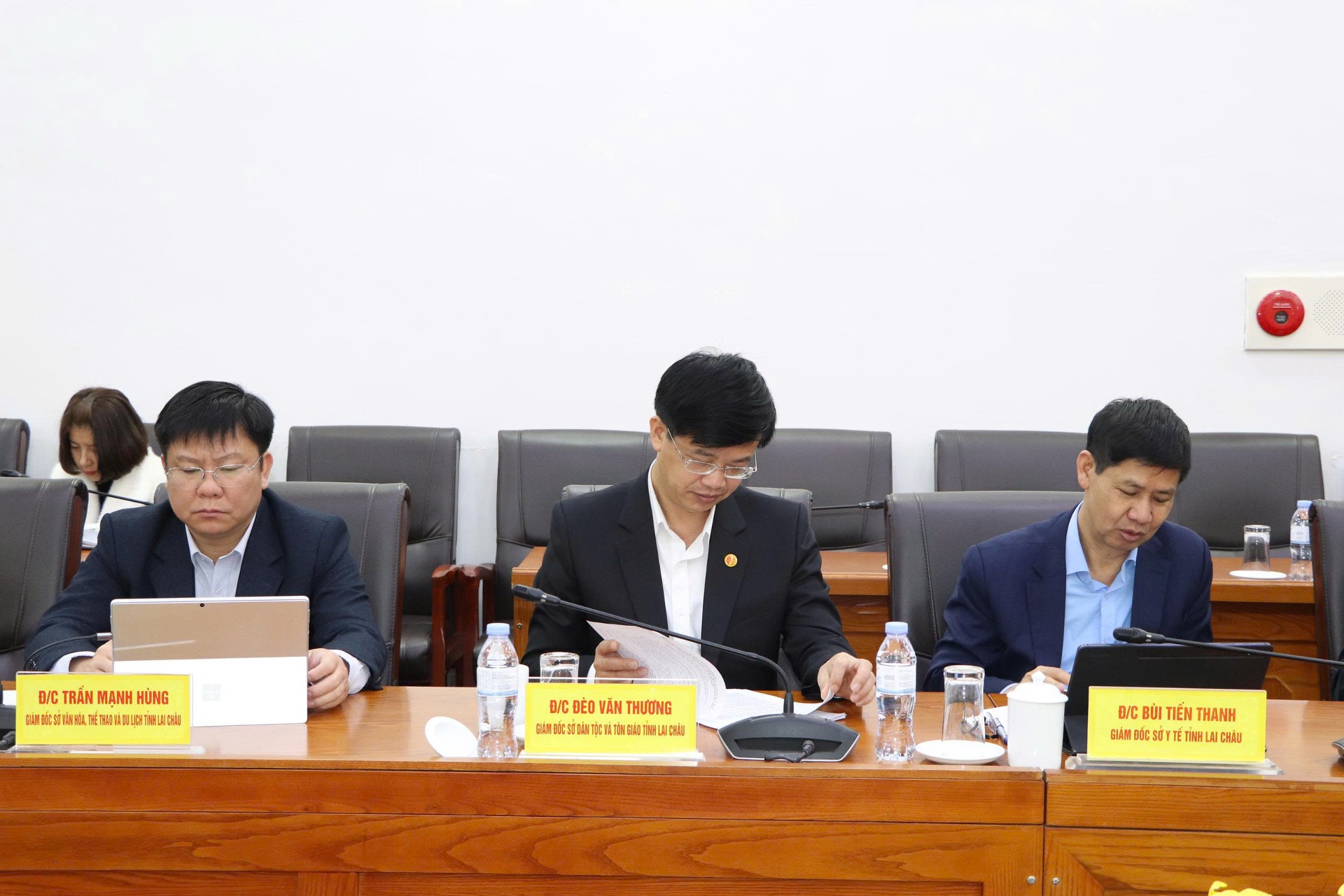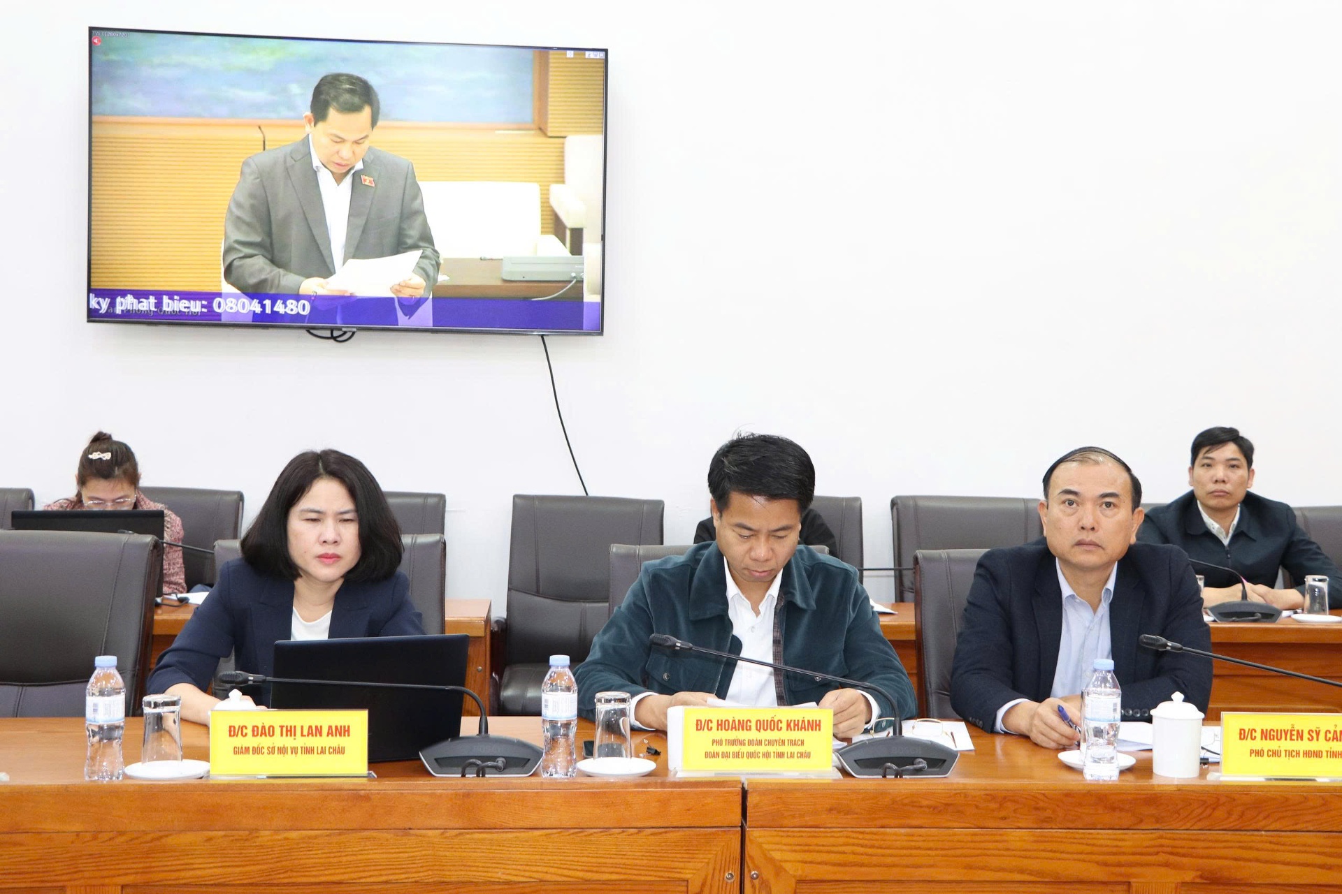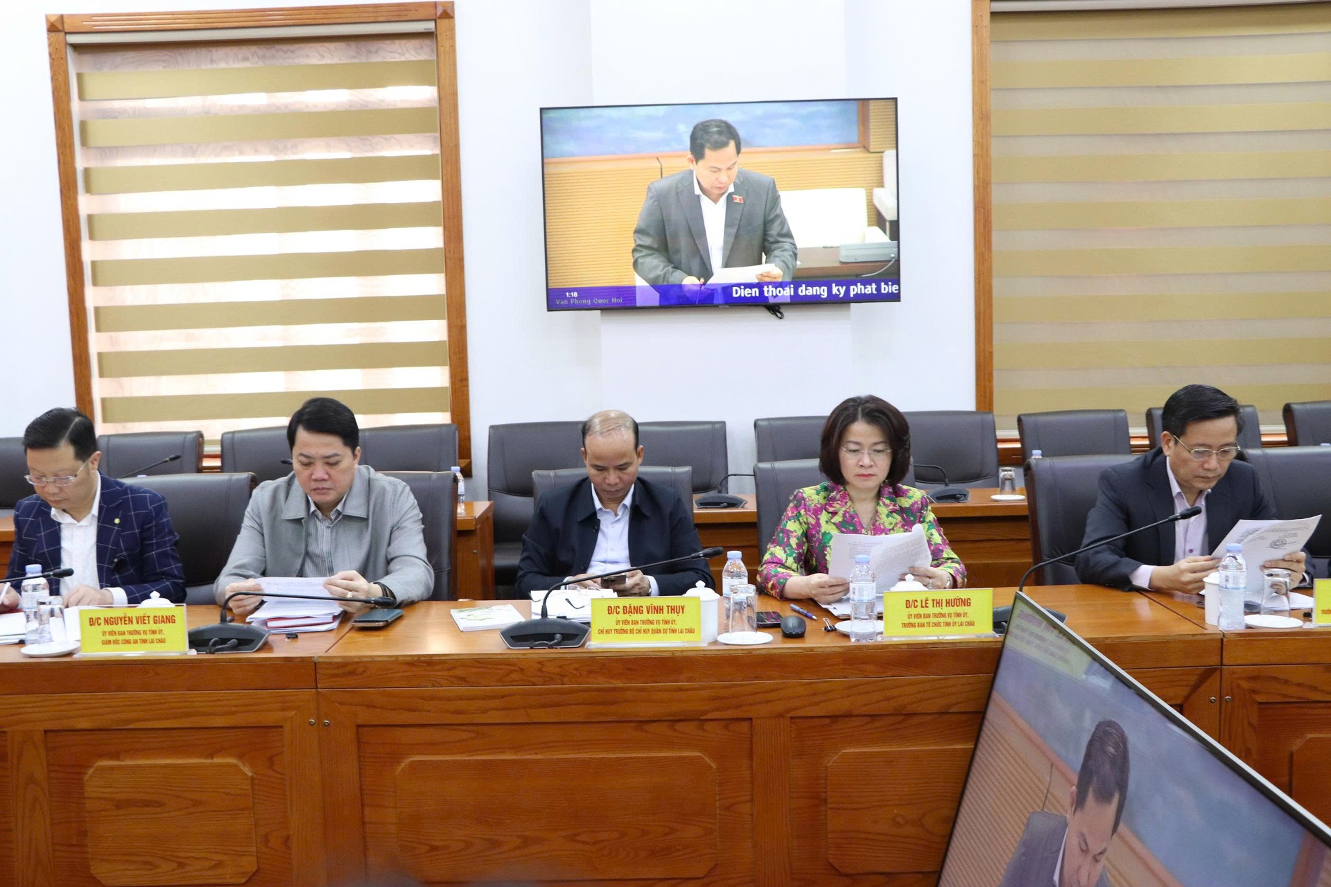 Tại điểm cầu tỉnh Lai Châu có đồng chí: Hà Quang Trung - Phó Bí thư Tỉnh ủy, Chủ tịch UBND tỉnh, Chủ tịch Hội đồng Bầu cử tỉnh Lai Châu; Nguyễn Ngọc Vinh - Phó Bí thư Tỉnh ủy, Chủ nhiệm Ủy ban Kiểm tra Tỉnh ủy, Chủ tịch Ủy ban MTTQ Việt Nam tỉnh; đại diện Thường trực HĐND tỉnh; các Ban HĐND tỉnh; lãnh đạo các sở, ban, ngành, Mặt trận Tổ quốc Việt Nam tỉnh; thành viên Ủy ban Bầu cử tỉnh…