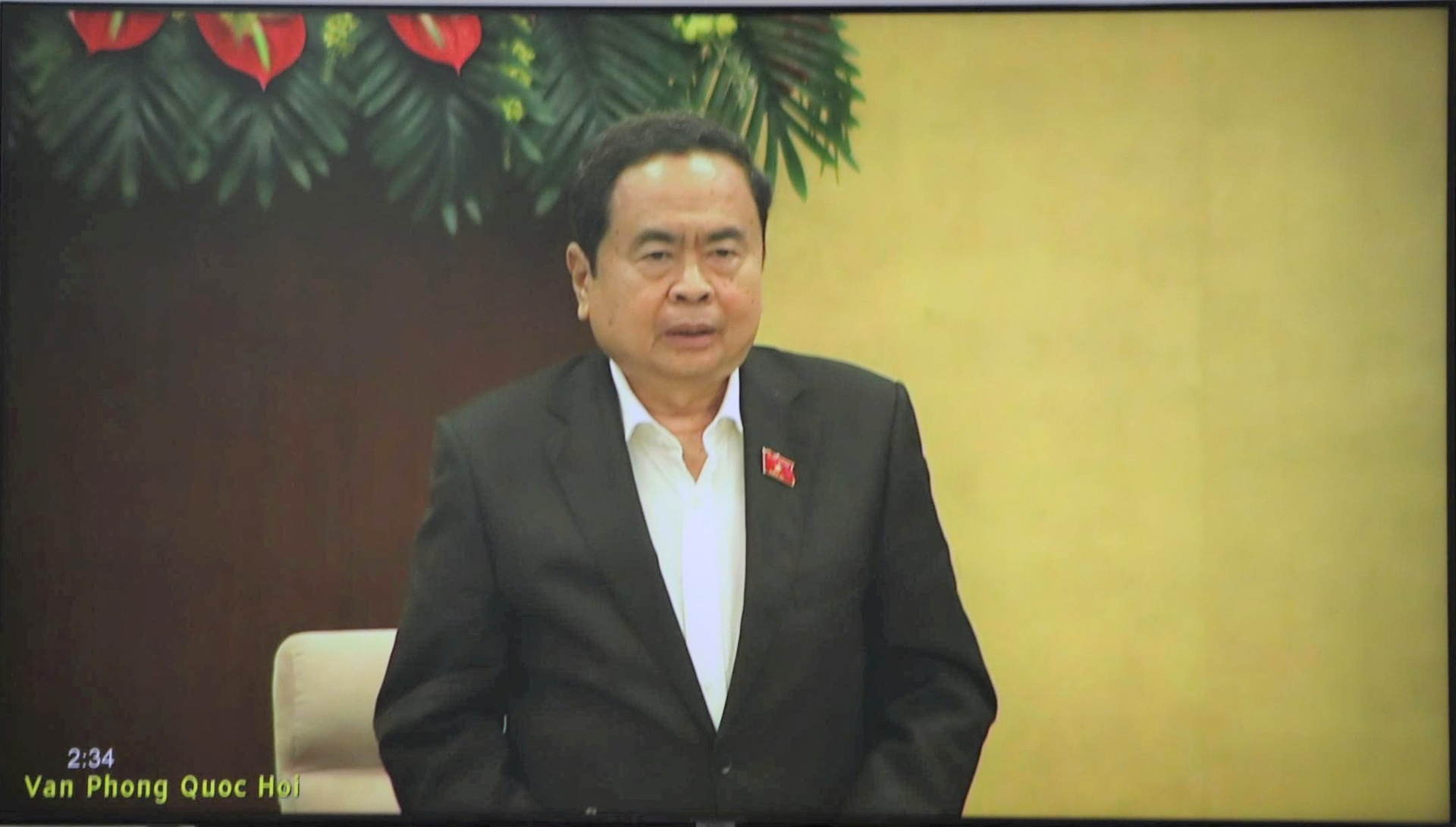 Đồng chí Trần Thanh Mẫn - Ủy viên Bộ Chính trị, Chủ tịch Quốc hội, Chủ tịch Hội đồng bầu cử Quốc gia phát biểu kết luận hội nghị.