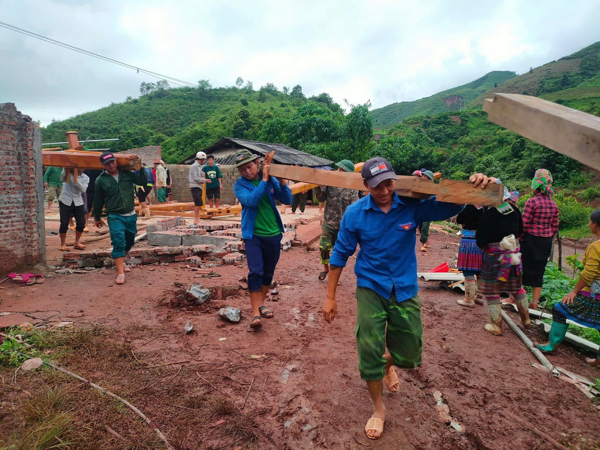 Đoàn viên, thanh niên hỗ trợ người dân xóa nhà tạm, nhà dột nát.