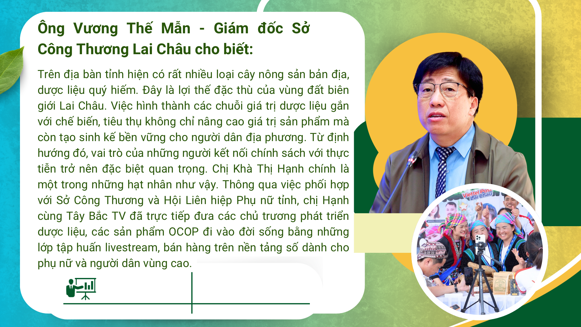 Do đó, cùng với nỗ lực quảng bá sản phẩm đặc sản, dược liệu Tây Bắc, chị còn tích cực phối hợp với Sở Công Thương và Hội Liên hiệp Phụ nữ tỉnh mở các lớp hướng dẫn kỹ năng số, livestream bán hàng cho người dân tại từng xã, bản. Các lớp học liên tục được tổ chức, không cầu kỳ, không lý thuyết nặng nề, mà đi thẳng vào những việc người dân cần nhất: cách mở tài khoản, cách cầm điện thoại, cách nói trước ống kính, cách chốt đơn, đóng gói và gửi hàng.