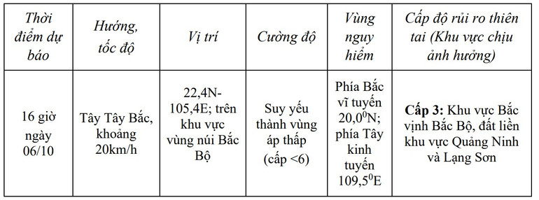 Từ sáng sớm 06/10 đến hết đêm 07/10, ở khu vực vùng núi, trung du Bắc Bộ có mưa to, lượng mưa phổ biến từ 100-200mm, cục bộ có nơi mưa rất to trên 300mm.