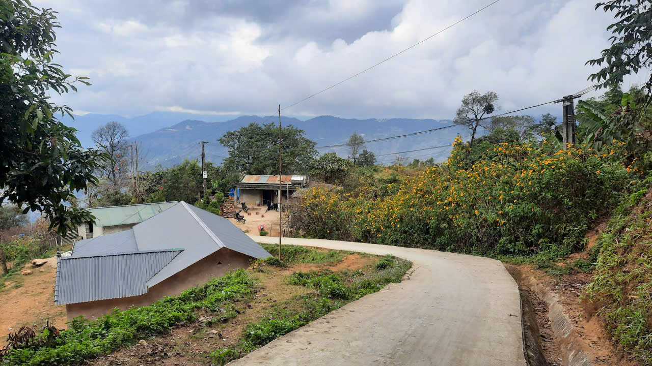 Con đường vào bản Hơ Mèo đã được đổ bê tông, giúp người dân đi lại thuận lợi.