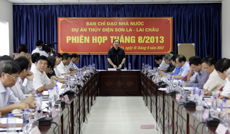 Làm việc với Phó Thủ tướng và Đoàn công tác có lãnh đạo các bộ, ngành Trung ương; đại diện các tỉnh: Lai Châu, Sơn La, Điện Biên và các nhà thầu đang thi công Nhà máy Thủy điện Lai Châu.