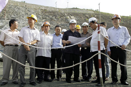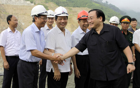 Trước đó, Phó Thủ tướng Chính phủ Hoàng Trung Hải cùng Đoàn công tác đã tới thăm hỏi, động viên cán bộ, công nhân viên các nhà thầu và kiểm tra thực địa, tiến độ thi công Nhà máy Thủy điện Lai Châu.