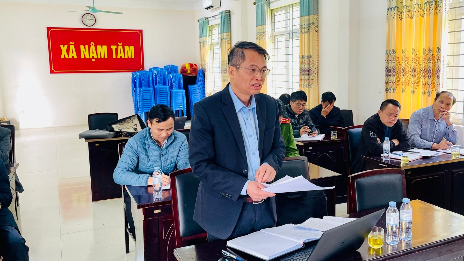 Lãnh đạo xã Nậm Tăm báo cáo kết quả triển khai công tác đảm bảo ATTP năm 2025.