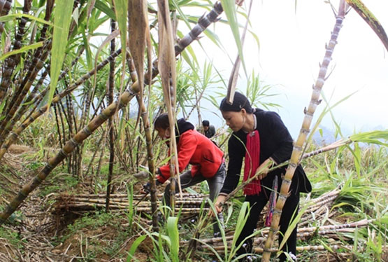 Chị Vàng Thị Sảm đang thu hoạch mía cho biết, gia đình chị trồng 2.000 cây giống, nảy mầm từ mắt mía ra với khoảng 2 vạn cây. Năm ngoái, gia đình chị thu nhập từ trồng mía khoảng 75 triệu đồng, cao gần gấp đôi so với trồng lúa, ngô. Thấy cây mía đem lại lợi nhuận cao, nhiều gia đình đã chuyển đổi mục đích sử dụng từ trồng lúa, ngô sang trồng mía.