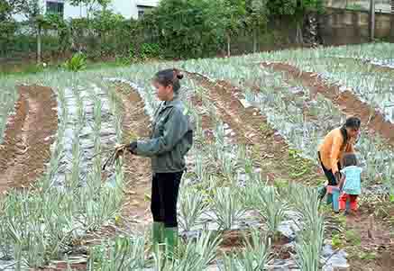 Bà con bản Che Bó (xã Phúc Than, huyện Than Uyên) chăm sóc dứa.