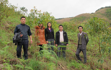 Đoàn cán bộ Sở Khoa học va Công nghệ kiểm tra mô hình trồng rừng Dự án tại xã Bình Lư, huyện Tam Đường.