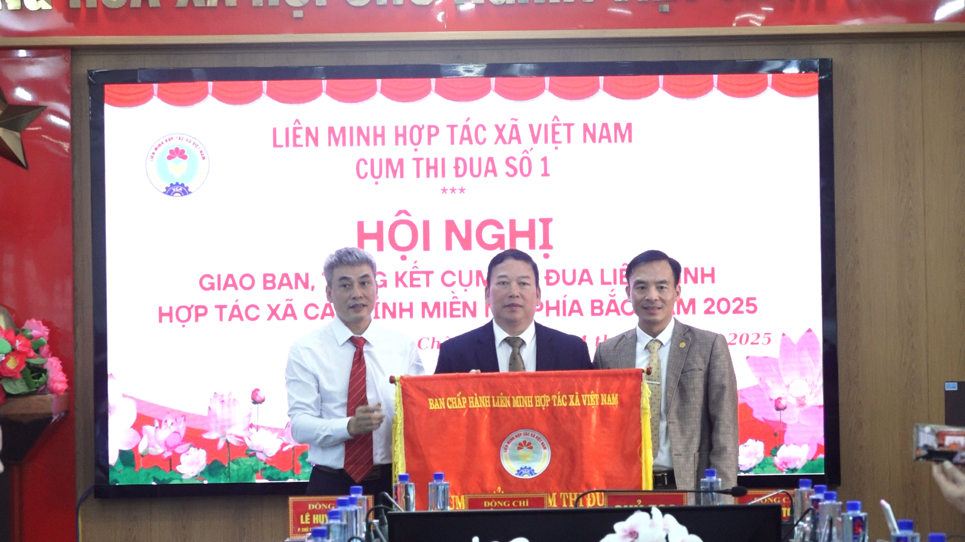 Đại diện Liên minh Hợp tác xã tỉnh Lai Châu bàn giao Cờ đăng cai Hội nghị giao ban Cụm thi đua số 1 năm 2026 cho Liên minh Hợp tác xã tỉnh Sơn La.