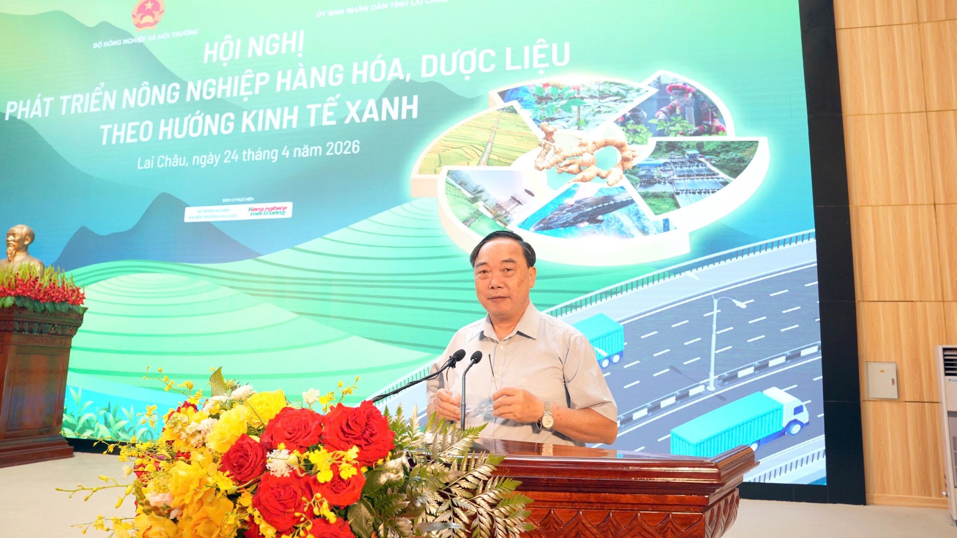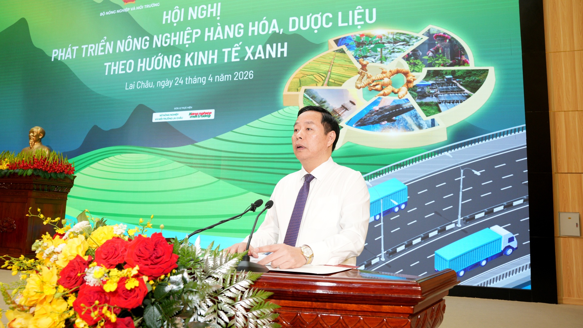 Sáng 24/4, tại Trung tâm Hội nghị Văn hóa tỉnh, UBND tỉnh Lai Châu phối hợp với Bộ Nông nghiệp và Môi trường (NN&MT) tổ chức Hội nghị “Phát triển nông nghiệp hàng hóa, dược liệu theo hướng kinh tế xanh” bằng hình thức trực tiếp và trực tuyến qua Zoom. Hội nghị nhằm làm rõ định hướng phát triển nông nghiệp bền vững của tỉnh Lai Châu gắn với chuyển đổi xanh, kinh tế tuần hoàn và thích ứng biến đổi khí hậu; đồng thời phân tích tiềm năng phát triển cây dược liệu, đặc biệt là sâm Lai Châu và các sản phẩm nông nghiệp chủ lực, qua đó đề xuất giải pháp nâng cao giá trị gia tăng, phát triển chuỗi giá trị và tăng cường kết nối, thu hút đầu tư phát triển thị trường.