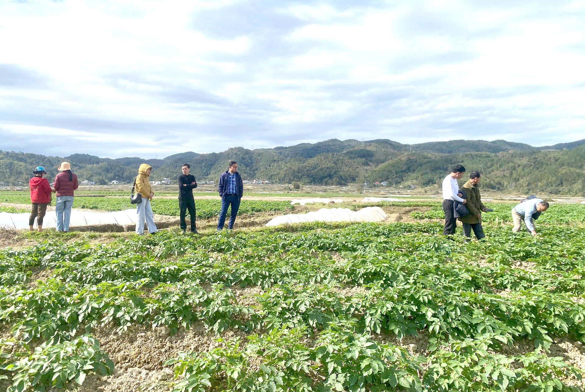 Đoàn kiểm tra của Sở Nông nghiệp và Môi trường kiểm tra tình hình dịch bệnh trên cây vụ đông tại xã Mường Than.