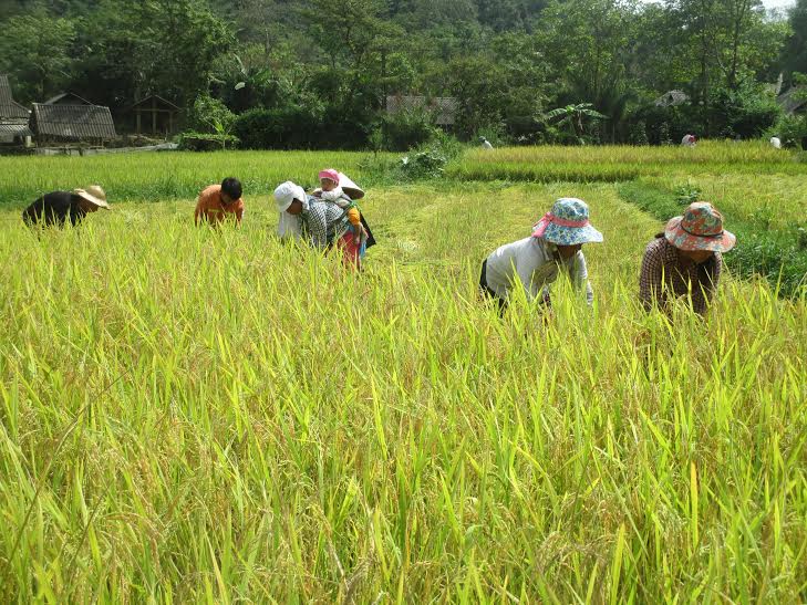 Nông dân bản Lao Tỷ Phùng, xã Nùng Nàng, huyện Tam Đường thu hoạch lúa mùa.