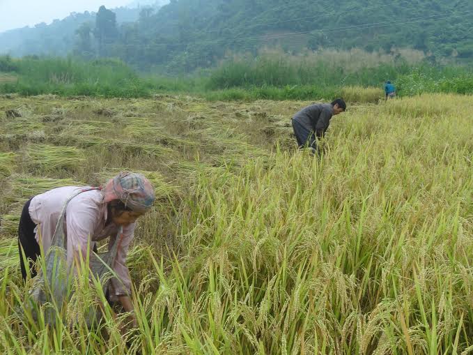 Nhân dân bản Nậm Cầy, xã Nậm Hàng thu hoạch lúa mùa