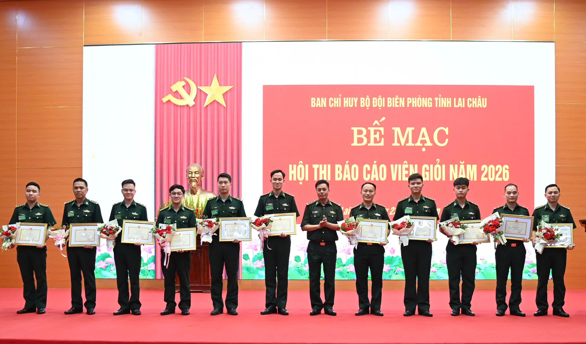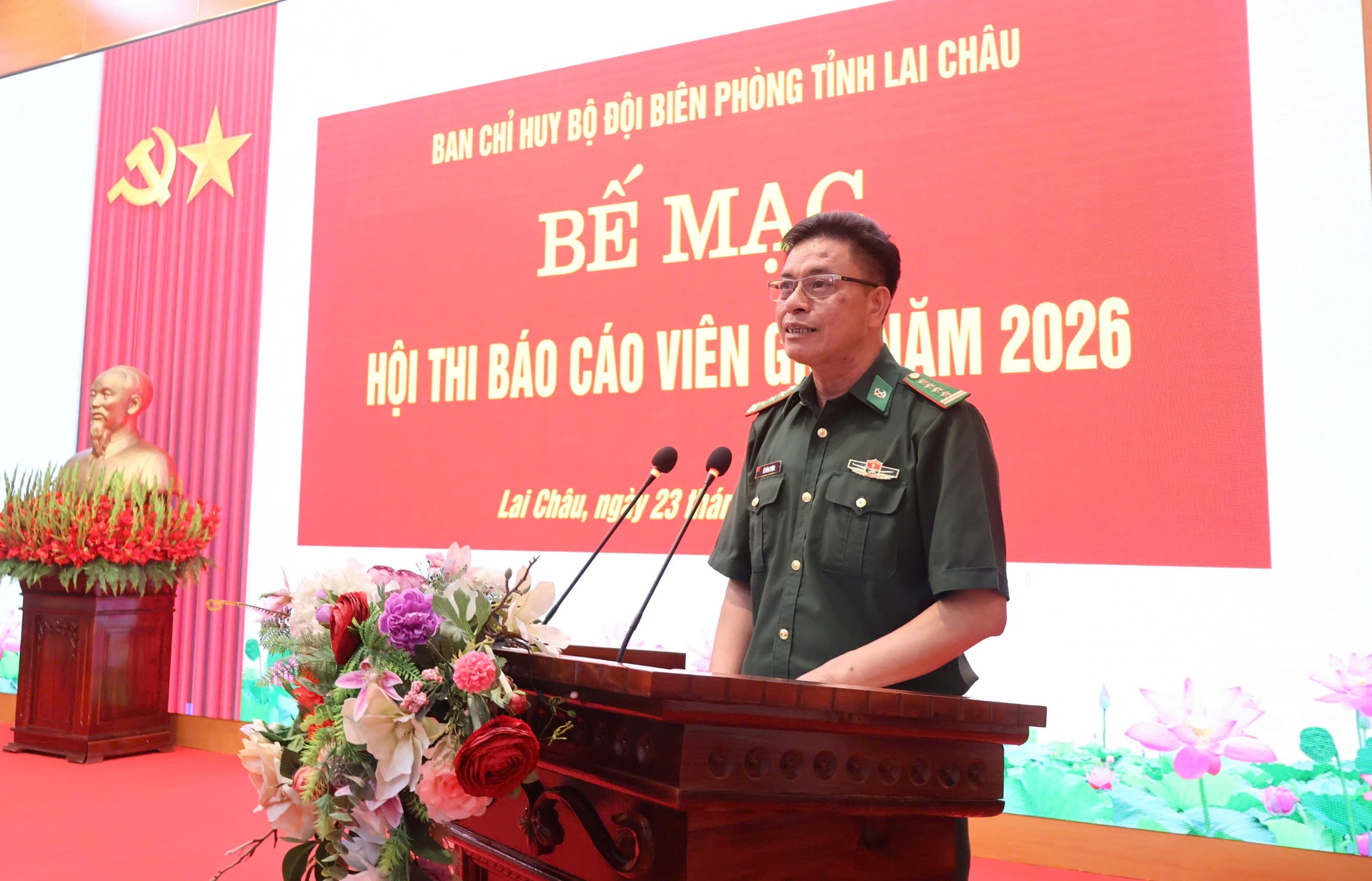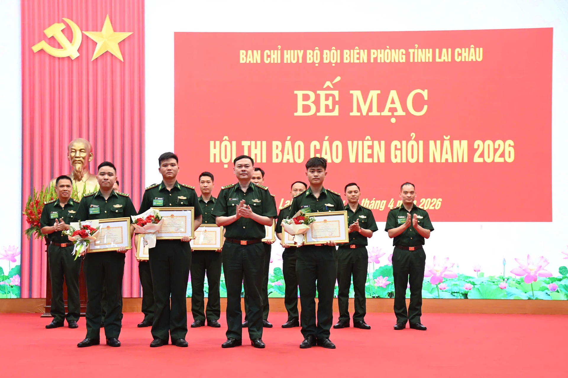 Chiều 23/4, Ban Chỉ huy Bộ đội Biên phòng (BĐBP) tỉnh tổ chức Bế mạc Hội thi Báo cáo viên giỏi cấp Ban Chỉ huy BĐBP tỉnh năm 2026. Đại tá Lê Công Thành - Phó Chính ủy BĐBP tỉnh, Phó Trưởng ban Thường trực Ban Tổ chức hội thi; lãnh đạo Ban Chỉ huy BĐBP tỉnh cùng các thí sinh dự bế mạc.