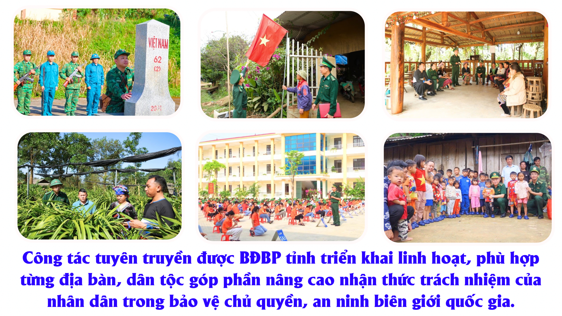 Công tác tuyên truyền về chủ trương, đường lối của Đảng, chính sách, pháp luật của Nhà nước, Luật Biên phòng Việt Nam và các chương trình mục tiêu quốc gia được triển khai linh hoạt, phù hợp từng địa bàn, từng dân tộc. Qua đó, nâng cao nhận thức, trách nhiệm của nhân dân trong tham gia bảo vệ chủ quyền lãnh thổ, an ninh biên giới quốc gia.