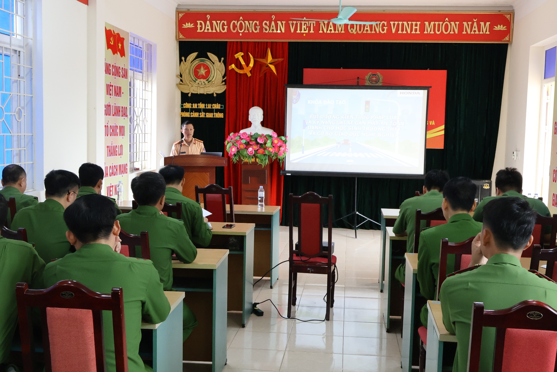 Trung tá Trần Ngọc Hà - Trưởng Phòng Cảnh sát Giao thông (Công an tỉnh) triển khai nhiệm vụ tại lớp tập huấn.
