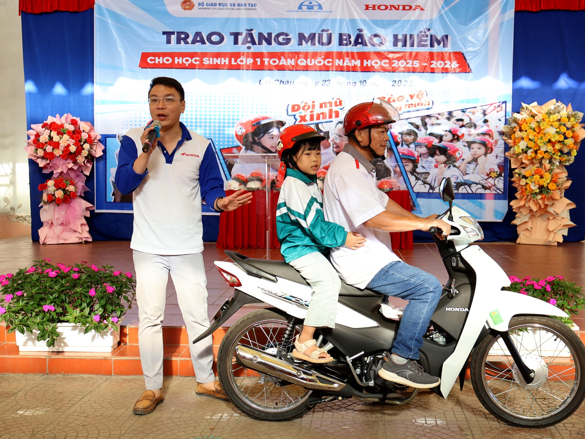 Nhân dịp này, Công ty Thương mại và Đầu tư Hòa An Lai Châu đã tặng nhà trường hơn 110 chiếc mũ bảo hiểm theo chương trình trao tặng mũ bảo hiểm cho học sinh lớp 1 toàn quốc năm học 2025 - 2026.