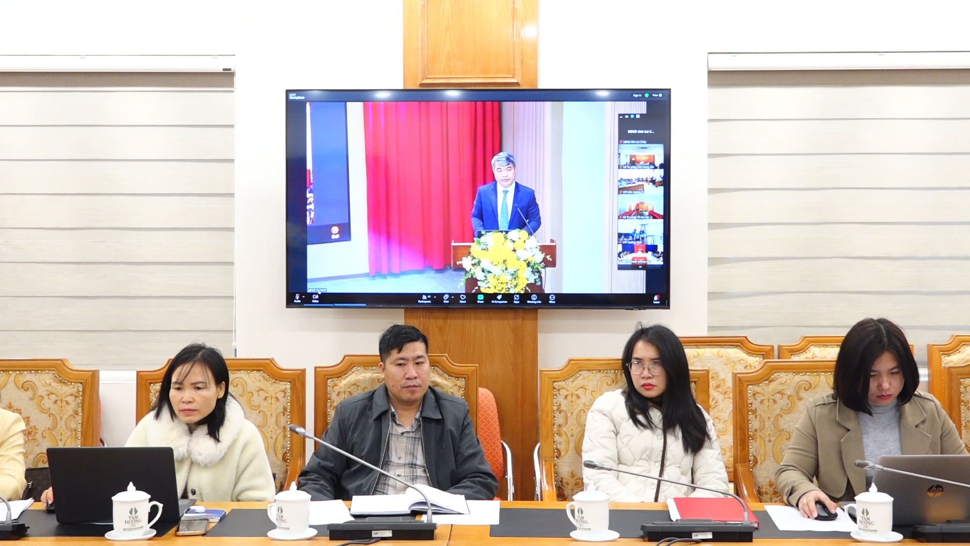 Các đại biểu dự hội nghị trực tuyến tại điểm cầu tỉnh Lai Châu.
