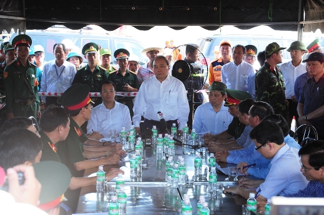 Thủ tướng Nguyễn Xuân Phúc làm việc với bộ chỉ huy tiền phương Đà Nẵng tại cảng Đà Nẵng, chiều 5-6.