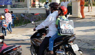 Đội mũ bảo hiểm cho trẻ khi đi xe môtô, xe gắn máy không chỉ bảo vệ an toàn cho trẻ em mà còn tạo ý thức cho trẻ khi tham gia giao thông.