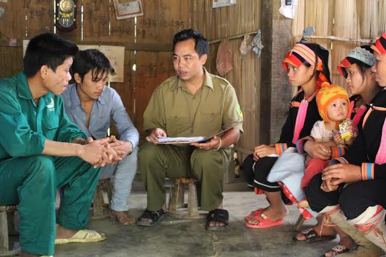 Công an xã Khổng Lào (huyện Phong Thổ) tuyên truyền pháp luật cho người dân.