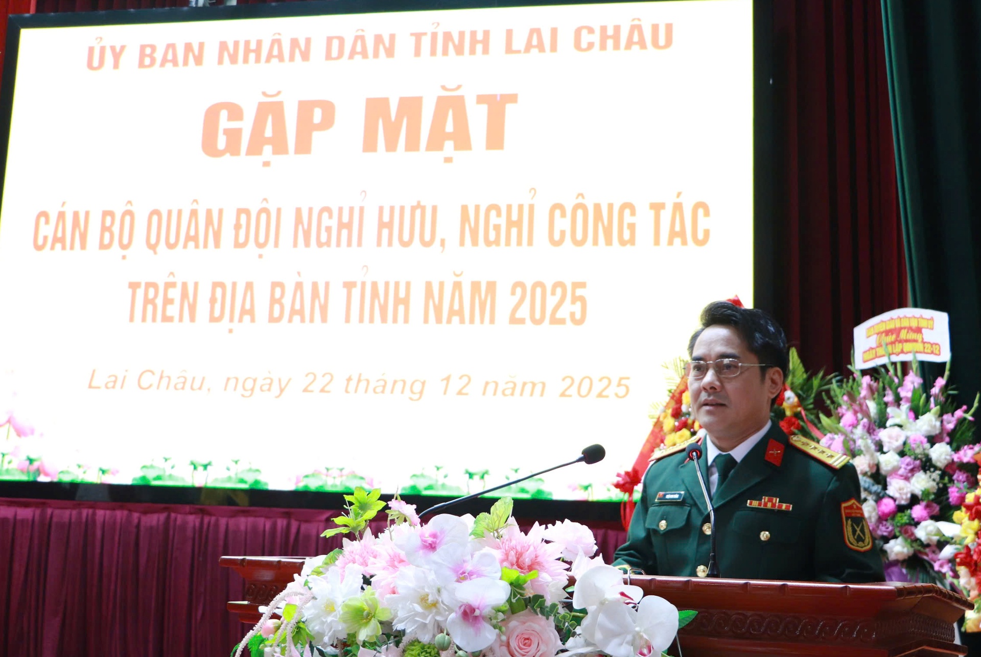 Trong thời gian tới, nhiệm vụ phát triển kinh tế - xã hội gắn với củng cố quốc phòng - an ninh của tỉnh đặt ra yêu cầu ngày càng cao. Tỉnh Lai Châu rất mong tiếp tục nhận được sự quan tâm, đồng hành, ủng hộ và những ý kiến đóng góp tâm huyết, trách nhiệm của các đồng chí cán bộ Quân đội nghỉ hưu, nghỉ công tác; phát huy vai trò, uy tín trong tuyên truyền, vận động nhân dân thực hiện tốt chủ trương của Đảng, chính sách, pháp luật của Nhà nước; giáo dục truyền thống yêu nước, cách mạng cho thế hệ trẻ; cùng cấp ủy, chính quyền các cấp xây dựng Lai Châu phát triển nhanh, bền vững.