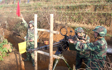 Cán bộ, chiến sỹ Trung đoàn 880 (Bộ CHQS tỉnh) luyện tập ngắm bắn súng 12ly7.