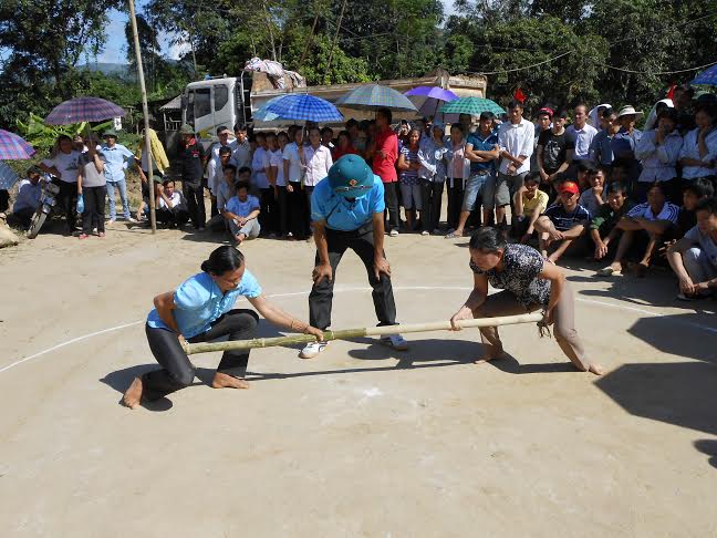 Nhân dân Mường So tham gia môn đẩy gậy tại Đại hội thể dục thể thao xã lần thứ I năm 2013.