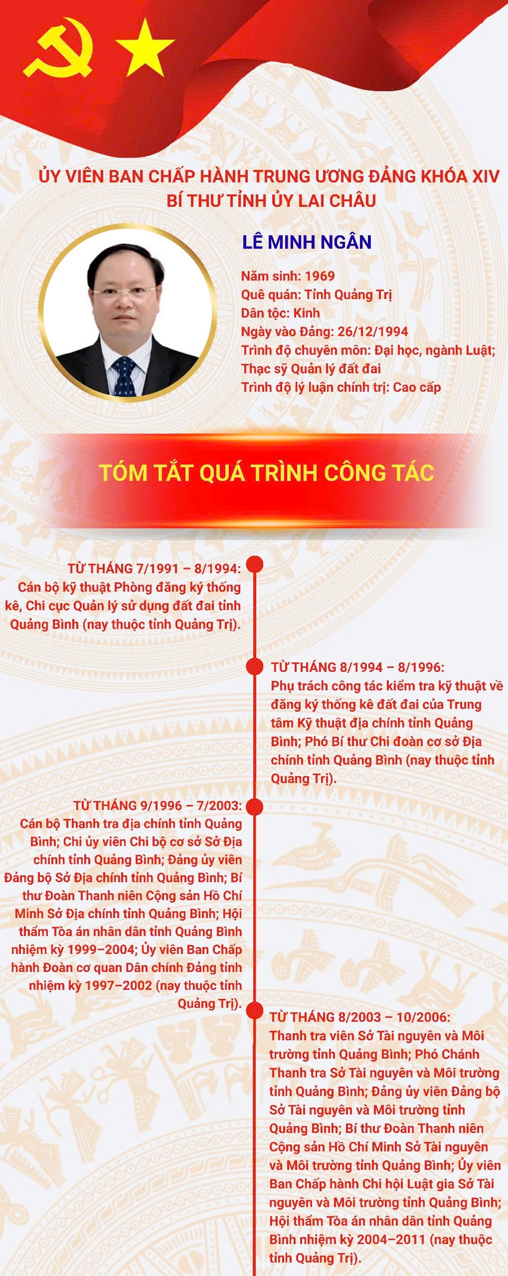 Chiều ngày 22/1, Đại hội đại biểu toàn quốc lần thứ XIV của Đảng tiến hành ghi phiếu, bỏ phiếu, công bố kết quả và thông qua danh sách các đồng chí trúng cử vào Ban Chấp hành Trung ương Đảng khóa XIV. Đồng chí Lê Minh Ngân, Bí thư Tỉnh ủy Lai Châu đã trúng cử Ủy viên Ban Chấp hành Trung ương Đảng khóa XIV, Báo và phát thanh, truyền hình Lai Châu trân trọng giới thiệu tóm tắt tiểu sử đồng chí Lê Minh Ngân.