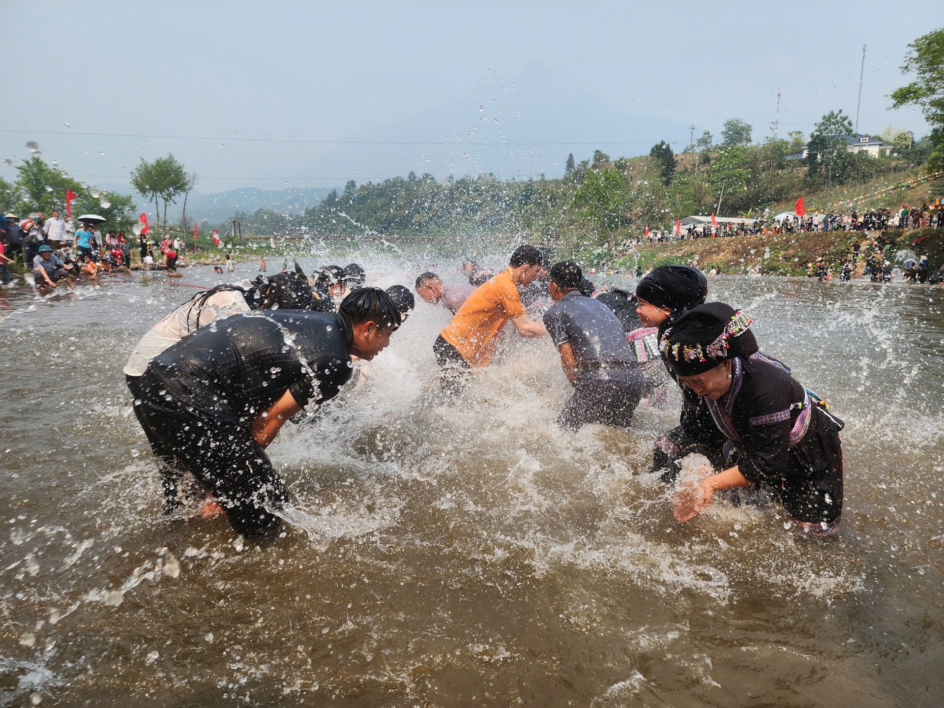 Người dân và du khách vui té nước tại lễ hội.