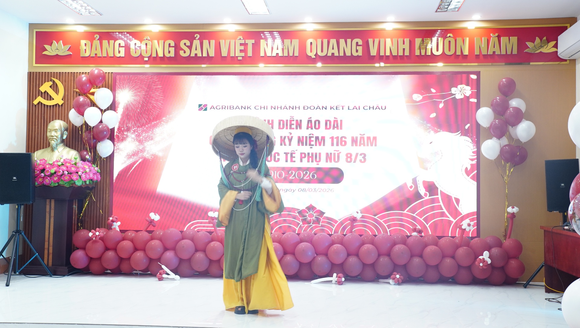 Dịp này, Agribank Chi nhánh Đoàn Kết còn tổ chức Hội thi trình diễn áo dài cho chị em.