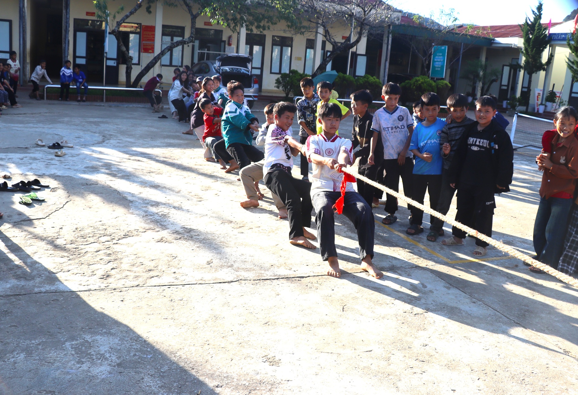 Trường Phổ thông DTBT THCS Làng Mô tổ chức cho học sinh chơi kéo co trong tiết học môn thể dục.