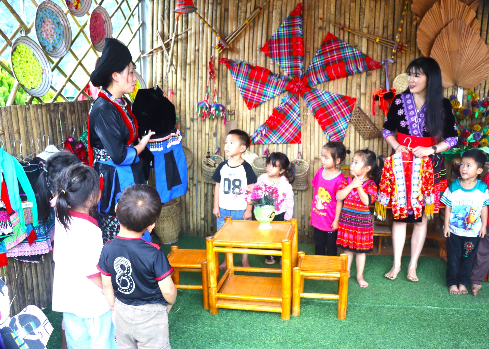 Giáo viên Trường Mầm non Làng Mô (xã Tủa Sín Chải) giáo dục văn hóa truyền thống cho trẻ.