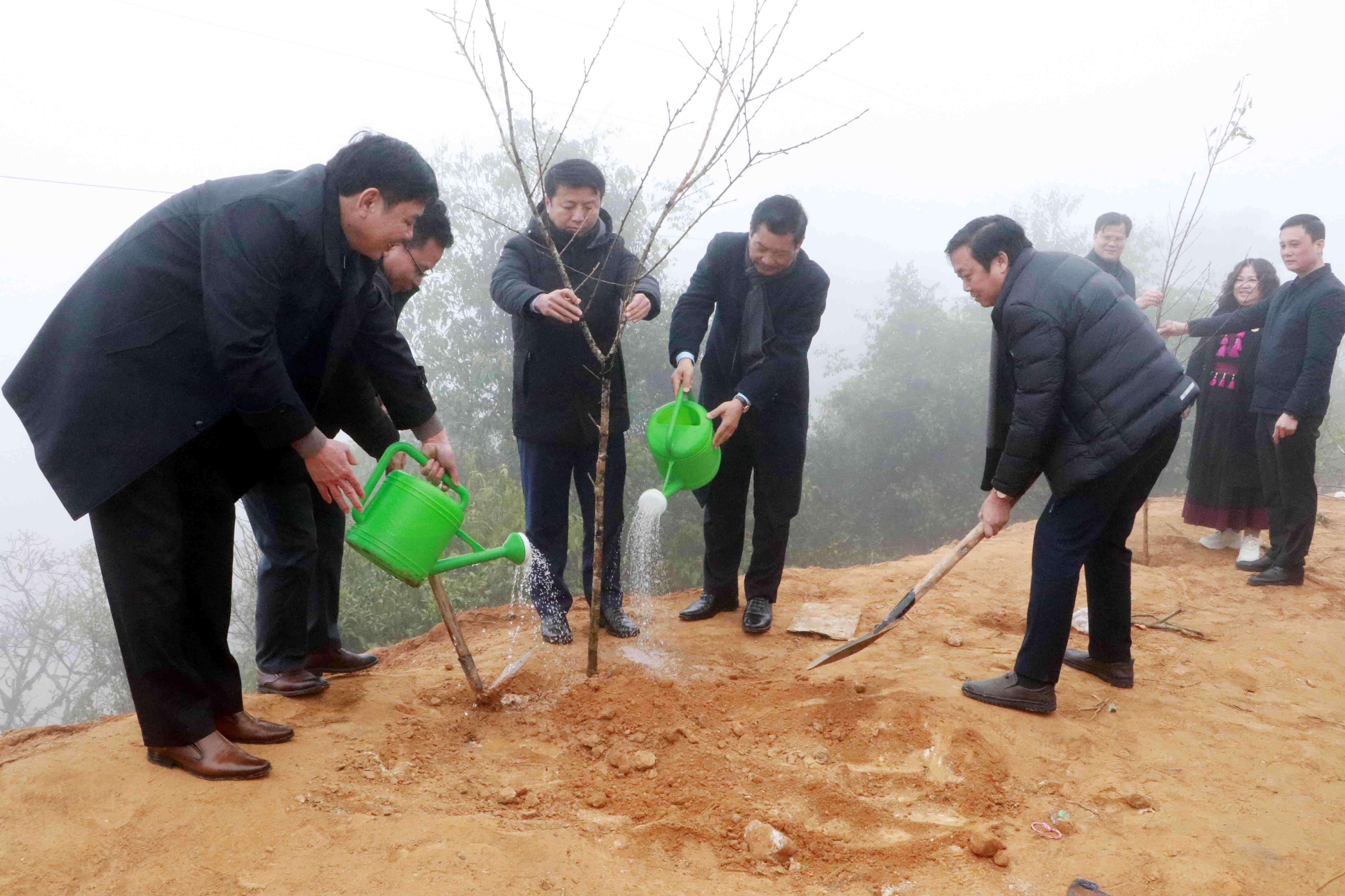 Lãnh đạo tỉnh, huyện Phong Thổ trồng cây trong khuôn viên tổ chức Lễ hội.