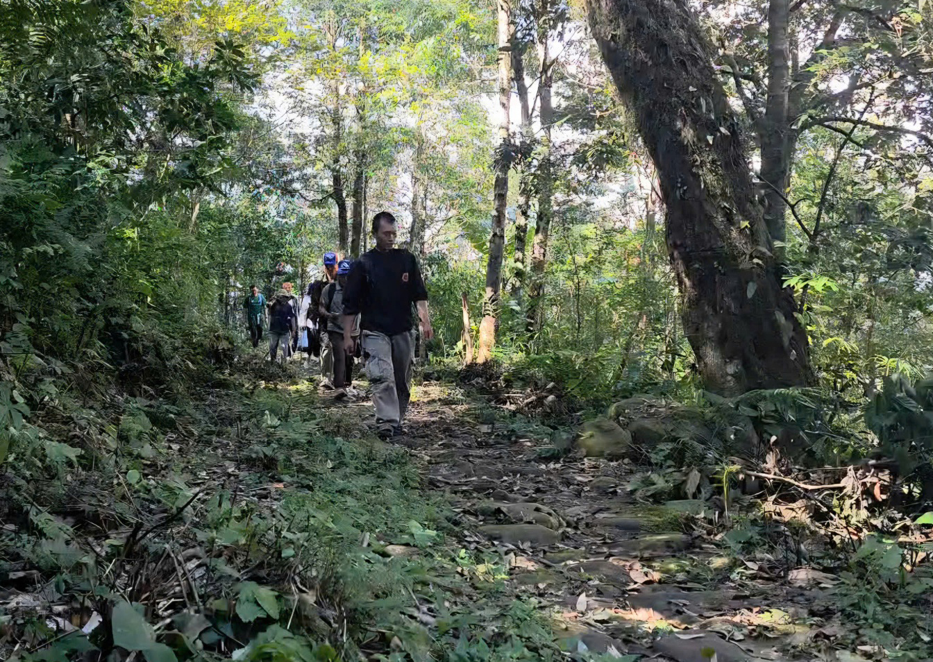 Từ thôn Sàng Mà Pho, 5km đầu tiên của hành trình khá dễ đi. Những phiến đá phủ bóng thời gian, mòn theo dấu chân người dân, tạo cảm giác thân thuộc như lời chào nhẹ nhàng của núi rừng. Nhưng càng đi sâu, Pavi càng khoác lên màu áo cổ tích: lớp rêu xanh phủ đá, sương sớm vắt ngang tán lá, ánh nắng xuyên qua rừng cổ thụ… Tất cả tạo nên không gian vừa hoang sơ, vừa huyền bí.