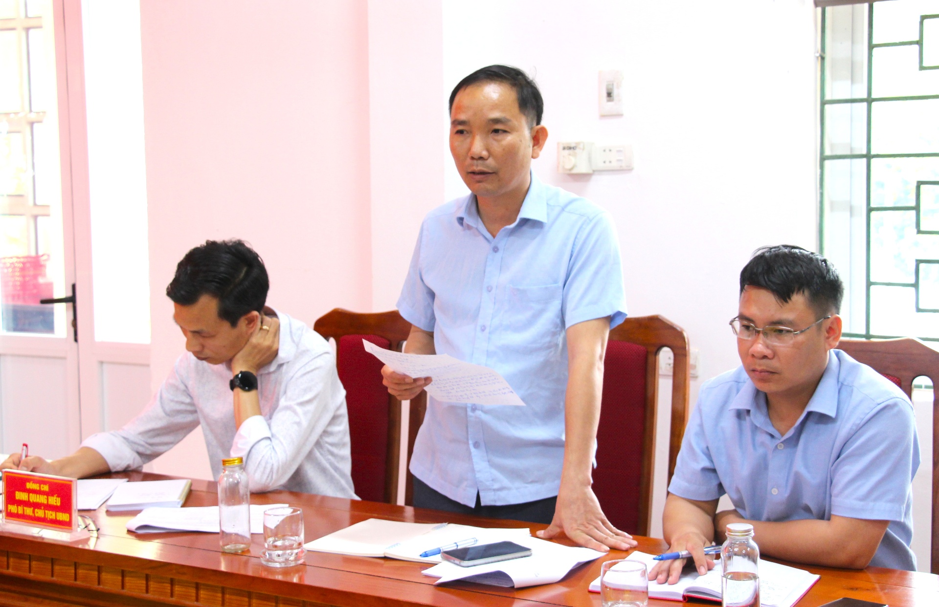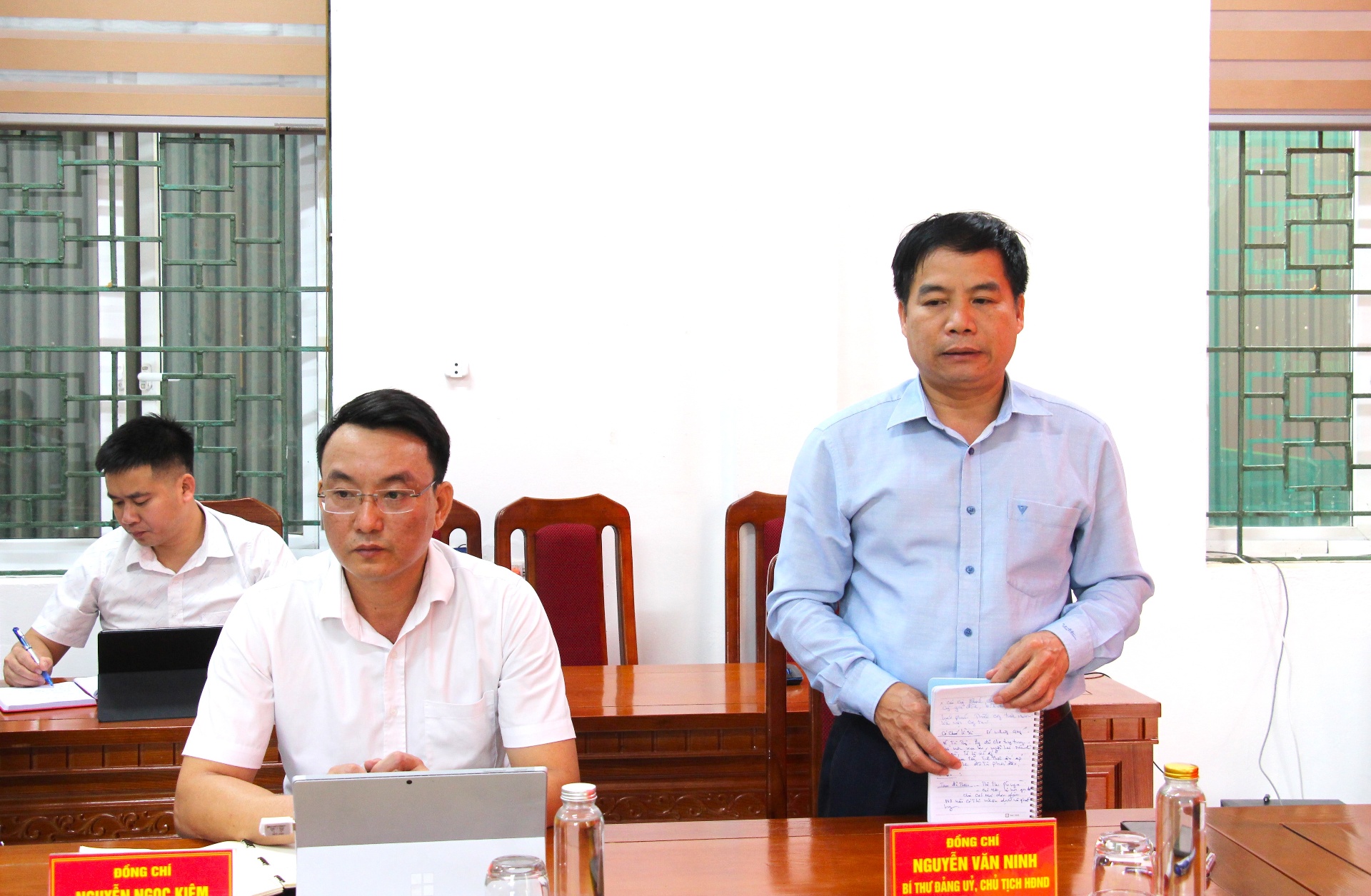 Đồng chí Nguyễn Văn Ninh - Bí thư Đảng ủy, Chủ tịch HĐND xã ý kiến tại cuộc họp.