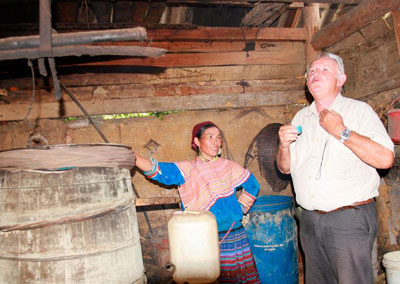 Ông Jasques Michon Yamoussoukro thưởng thức rượu ngô Bản Phố.