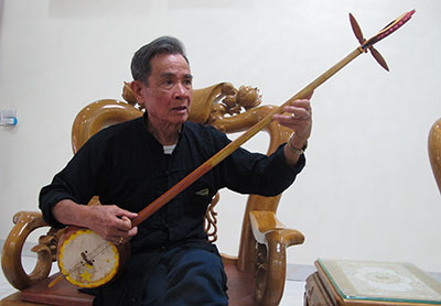 Ông Lò Văn Khoong chơi đàn tính tẩu.