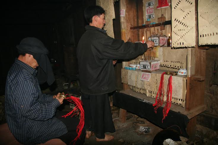 Người Mông bản Noong Quang, xã Khoen On chuẩn bị bàn thờ ngày tết.
