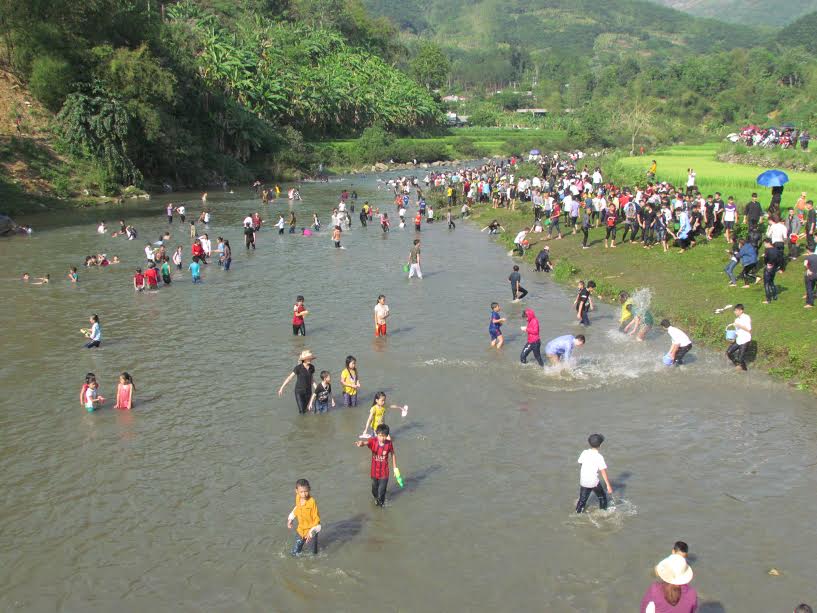 Nhân dân và du khách tham gia té nước.