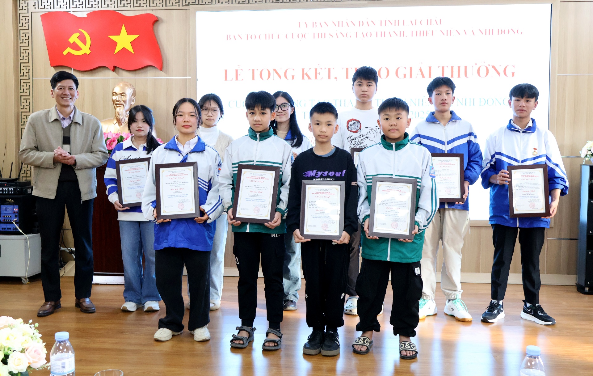Tại buổi lễ, Ban Tổ chức Cuộc thi đã trao giải cho các tác giả, nhóm tác giải đoạt giải, trong đó, 3 giải đặc biệt thuộc về các đề tài: “Phần mềm theo dõi sức khoẻ tại trường học ứng dụng trí tuệ nhân tạo AI” của nhóm tác giả: Tẩn Huyền Trang - Lớp 12C1, Trường PTDT nội trú THPT tỉnh Lai Châu; Giàng Thị Ngọc Anh - Lớp 12C1, Trường PTDT nội trú THPT tỉnh Lai Châu thuộc lĩnh vực dự thi phần mềm tin học; “Lớp học thông minh trong kỷ nguyên số” của nhóm tác giả Đinh Thái Nghiệp - Lớp 7A5, Trường THCS Tân Phong, phường Tân Phong; Lê Trường Giang - Lớp 7A5, Trường THCS Tân Phong, phường Tân Phong; Hoàng Lê Hải Nam - Lớp 8A1, Trường THCS Đoàn Kết, phường Đoàn Kết và “Bàn học nhắc nhở khi đọc sách quá gần” của nhóm tác giả Võ Kim Ngân - Lớp 7A3, Trường THCS Tân Phong, phường Tân Phong thuộc lĩnh vực đồ dùng dành cho học tập.