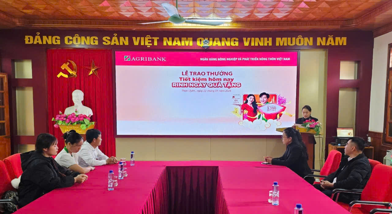 Ngày 22/1, Agribank Chi nhánh Than Uyên (tỉnh Lai Châu) tổ chức Lễ trao thưởng chương trình khuyến mại “Tiết kiệm hôm nay – Rinh ngay quà tặng” dành cho các khách hàng may mắn và thân thiết.