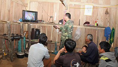 Người dân bản Hà Xi xem tivi từ nguồn điện lưới Quốc gia.