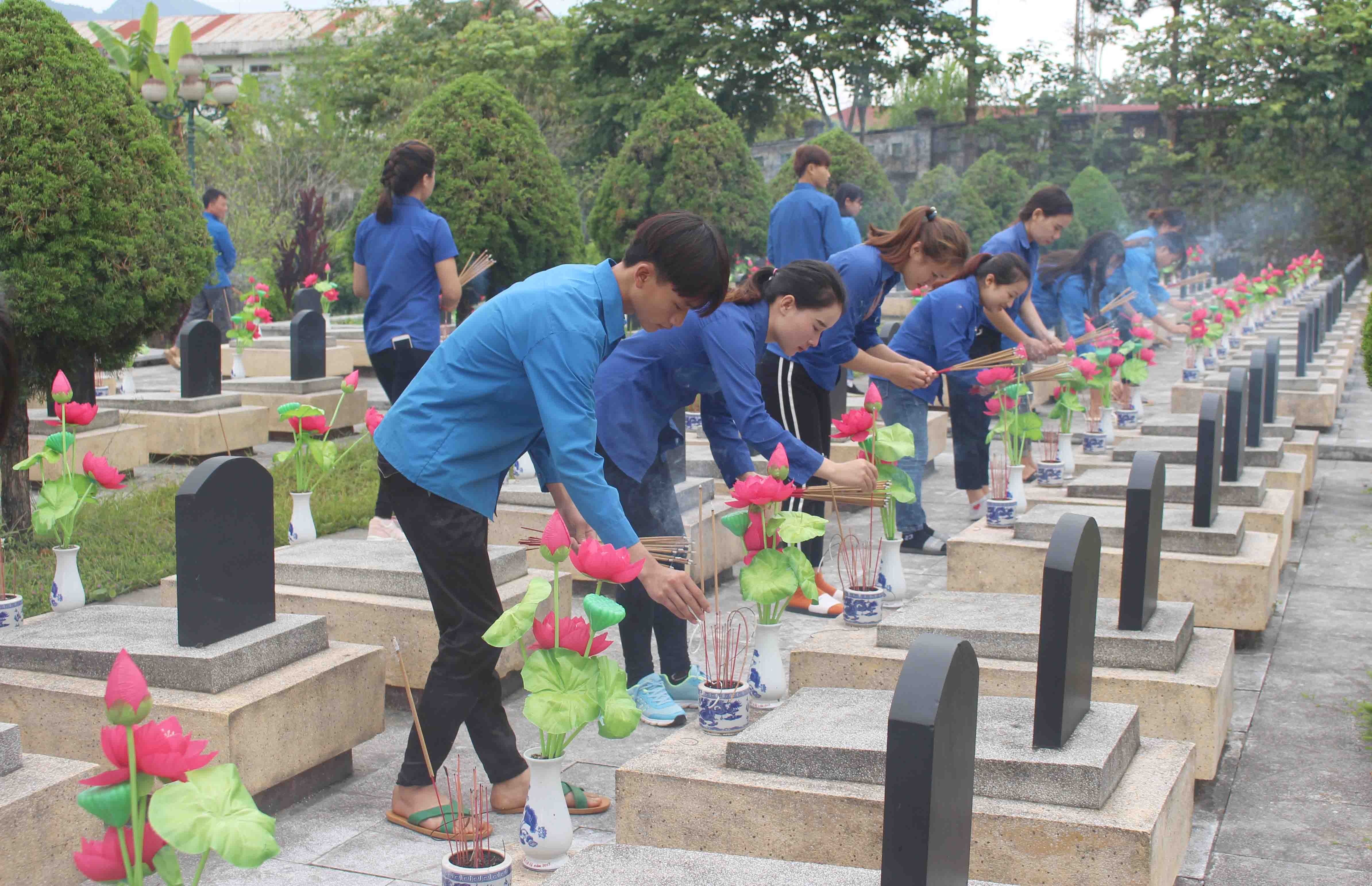 Đoàn viên, thanh niên Đoàn Trường Cao đẳng Cộng đồng Lai Châu thắp hương trên các phần mộ liệt sỹ tại Nghĩa trang Liệt sỹ tỉnh.