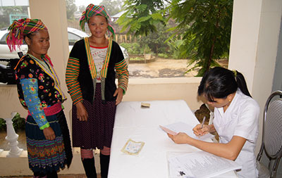 Cán bộ Trạm Y tế xã Pú Đao (huyện Nậm Nhùn) làm thủ tục khám bệnh cho người dân.