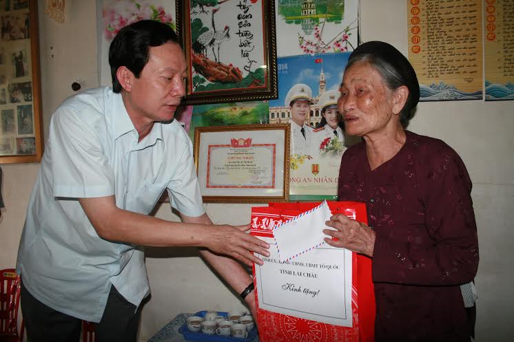 Thăm hỏi, tặng quà gia đình bà Lê Thị Chính ở tổ 2 phường Đoàn Kết - thành phố Lai Châu (vợ liệt sỹ) và gia đình bà Lưu Thị Ngọc, tổ 6 phường Quyết Tiến - thành phố Lai Châu (mẹ liệt sỹ), Bí thư Tỉnh ủy Lò Văn Giàng đã ân cần thăm hỏi sức khỏe, tình hình lao động, sản xuất của các gia đình và khẳng định: Đảng, Nhà nước luôn ghi nhận và biết ơn sự hy sinh của vợ, mẹ các liệt sỹ, quan tâm chăm sóc, làm tốt công tác đền ơn đáp nghĩa đối với những người có công. Đồng thời, chúc các gia đình sức khỏe, vui vẻ, tiếp tục là tấm gương sáng cho các thế hệ con, cháu noi theo.