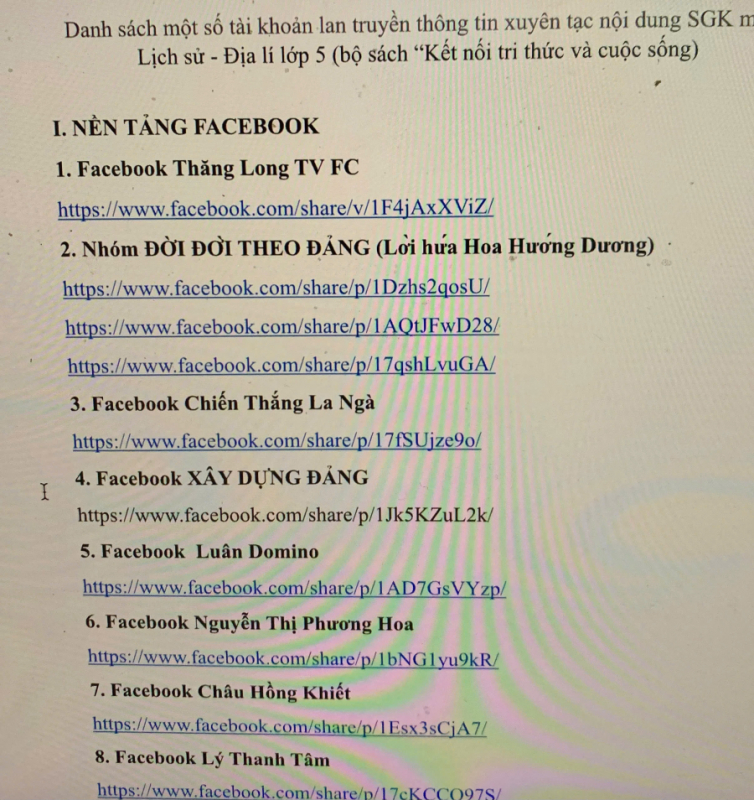 Người dân không nên chia sẻ danh sách một số tài khoản lan truyền thông tin xuyên tạc nội dung SGK Lịch sử - Địa lý lớp 5.