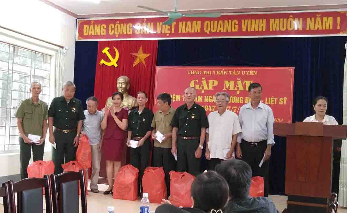 Nhân dịp này, đại diện lãnh đạo huyện, Ủy ban MTTQ Việt Nam huyện trao trao tặng 59 suất quà cho thương binh, gia đình liệt sĩ tại thị trấn Tân Uyên. Trong đó, có 58 suất quà của Chủ tịch nước, 16 suất quà của tỉnh và 59 suất quà của huyện.