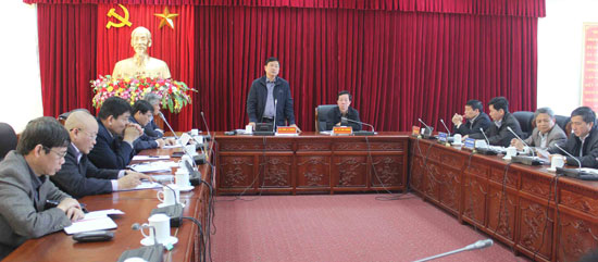 Đồng chí Đinh La Thăng – Bộ trưởng Bộ Giao thông Vận tải phát biểu chỉ đạo tại buổi làm việc với tỉnh ta.